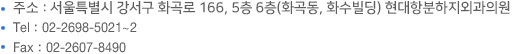 서울특별시 강서구 화곡로 166, 5층 6층(화곡동, 화수빌딩) 현대항분하지외과의원